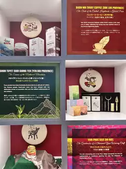 🔸 Local Flavor Introduction Booth — Featuring authentic specialty products like Vietnamese coffee (Buon Ma Thuot), Suoi Giang ancient tea, and Van Phuc silk, combining aroma and craftsmanship.