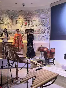 🔸 Traditional Instruments and Costume Display — Showcasing traditional Vietnamese costumes like the Ao Dai, along with ethnic instruments such as bamboo xylophones and drums, immersing you in a cultural tour.
