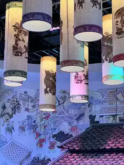 The pavilion features background walls and bustling market scenes modeled after the ancient streets, instantly making you forget you're in Japan.