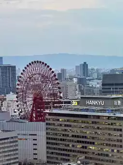 🏠 Room Highlights: The corner floor-to-ceiling windows are stunning! You can see the Ferris wheel and Hankyu night view, waking up to sunshine is super cozy🌇 Bathroom amenities by BYREDO, but the bathroom layout is a bit inconvenient, recommend bringing your own bath bag~ The wooden and granite dresser design is top-notch, spacious with a corner spot, maximizing comfort