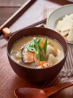 ✶ What It Is: A hearty soup crafted from sake lees (the nutrient-rich mash left after sake fermentation), combined with vegetables, tofu, or fish for a tangy, robust flavor.