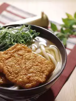 ✶ The Story: The name “kitsune” (fox) originates from a Shinto legend in which foxes, considered messengers of the god Inari, adore aburaage (fried tofu) as an offering. This dish, dating back to the Edo period, became a local favorite in Osaka’s temples and homes, blending folklore with culinary tradition.
