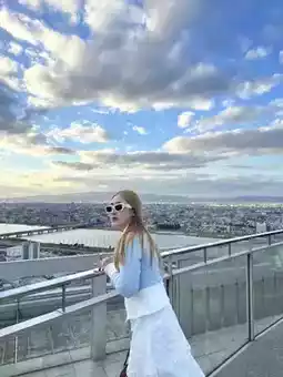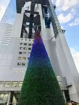 This is the Umeda Sky Building, a high vantage point in Osaka where you can enjoy a 360-degree view. I must say, anyone who loves city views should not miss this because it’s stunning!! The view during sunset is especially beautiful in a unique way. A highlight for tourists here is usually taking photos with the very long escalator tunnel, which is a must-check-in spot for anyone visiting Osaka. There is also a small café at the top where you can relax. During our visit, the lower part of the building was decorated with a warm Christmas theme.