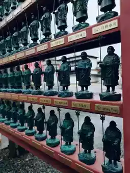 The path winds through leafy corridors and past a shrine that gently guides you through the cleansing ritual—an introduction to spiritual etiquette that feels both symbolic and grounding. Lined up nearby are rows of tiny Buddha statues, each carrying a silent prayer, a soft echo of devotion placed by countless hands before mine.