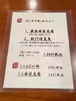 The interior has a calm, modern Chinese atmosphere, and the service is polite. The quality at 1,000 yen is outstanding value. This is the essence of Kita-Shinchi lunch where you can enjoy the depth of spiciness and aroma! Next time I come to Osaka, I will definitely repeat, and I also want to try the steamed fish. It was a very satisfying moment!