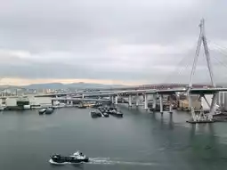 However, it closes at midnight and opens at 6 AM. The rooms face the Tempozan Bridge, and below you can see large ships passing by frequently, offering a beautiful ocean city view. From the onsen terrace, the Ferris wheel is clearly visible.