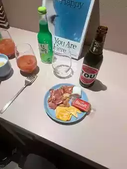 15:00 Check-in & head to the basement lounge. Welcome drinks are Korean soju soda and black stout, paired with nuts & prosciutto (photo 2)