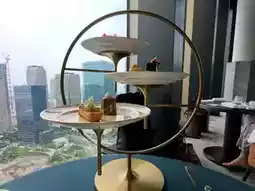 The new hotel Waldorf Astoria Osaka’s Peacock Alley café, located on the 29th floor, offers a refreshing open view overlooking Umekita Park. We were grateful to be seated at a central window seat.