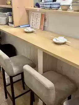 Inside the restaurant, there are table seats, counter seats perfect for dates or solo drinking, and box seats. It is a comfortable space that can be used in various scenes.