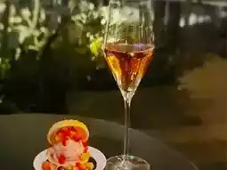 Among the menu items, the monaka paired with champagne, which reflects a Japanese style without being excessive, caught my eye. It was impossible to resist the visual of the monaka generously filled with strawberries in season. The set includes one monaka and one glass of champagne.