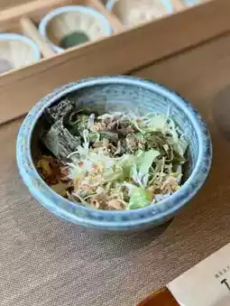 The aroma of chicken grilled over charcoal and the fluffy rice pair perfectly. The different textures of each part are enjoyable, and the yuzu pepper accent tightens the overall flavor. It was a visually beautiful and highly satisfying dish.
