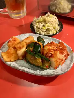 The kimchi has a good balance of spiciness and acidity, and the namul has a gentle flavor with sesame oil aroma. Perfect palate cleansers between yakiniku bites.