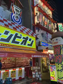 This area, just near Tsutenkaku Tower, shines with lively neon lights and is full of that unmistakable Osaka vibe! Just walking around here is endlessly exciting 🎉