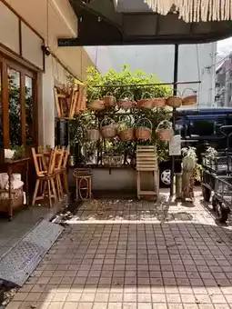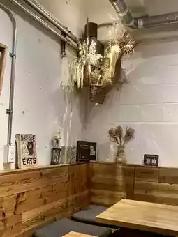 The interior has a warm wooden atmosphere, with dried flowers and other decorations tastefully arranged.