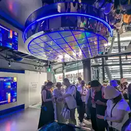 The Tech World Pavilion features a life theater introducing Taiwan's unique ecology and showcases Taiwan's technological soft power through AI and other technologies.