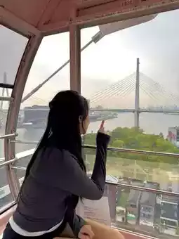 🎡The view from the top is stunning, offering a wide view of Osaka Bay, Universal Studios Japan amusement park, and the red Minato Bridge. You can also see the grand Santa Maria ship.