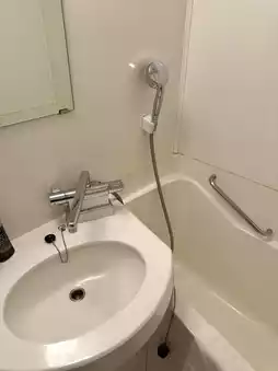💗The bathroom is quite narrow, with a bathtub and an automatic toilet.