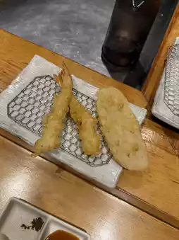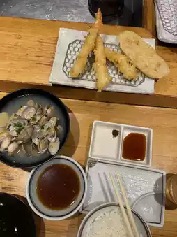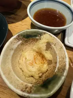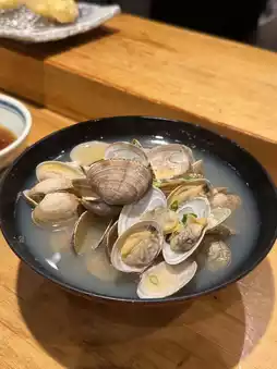 Tempura Makino Namba is a must-visit tempura restaurant that's currently very popular. There's usually a long line, but the wait isn't too long. The seating is bar-style, allowing you to watch the staff fry tempura fresh and serve it in an omakase-style experience. The staff carefully fry each item and serve it directly to your table. The restaurant offers set meals, rice bowls, or you can order items individually. I ordered a set with three shrimp and vegetables. The shrimp were crispy, bouncy, and delicious without being greasy. The onion was served in a large piece, which might feel a bit heavy if you eat too much. A must-try is the tempura egg, which is rich and flavorful, especially when paired with the recommended sauce and rice. To balance the richness, I also ordered a generous portion of clam soup, which was delicious and satisfying. Overall, it was worth it, and I almost couldn't finish everything. If you're visiting Osaka, make sure to add this restaurant to your list! 🍱🍤