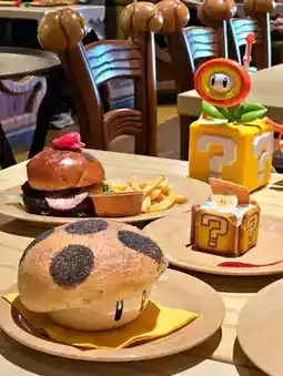 The cafes are fantastic too! At Kinopio's Cafe (Toad Cafe), there are super cute Mario-themed menu items like the Super Mushroom Pizza Bowl or Question Block Tiramisu. For those who love taking photos, don’t miss out—you need to book a time or get in line quickly because the queues are really long.