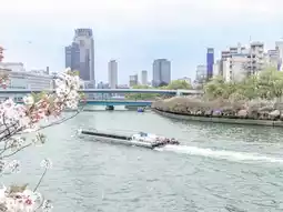 Want to explore Osaka’s charm from a different perspective? The **Aqua Liner Water Bus** is your perfect choice! This sleek blue and white boat carries passengers smoothly between the Dotonbori and Tosabori Rivers, offering stunning views of landmarks like Osaka Castle and Tsutenkaku, while getting up close to the lively streets and neon lights of Dotonbori.