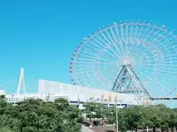 Osaka Tempozan, located by Osaka Bay, is a popular tourist destination that combines natural scenery with urban entertainment. The most eye-catching attraction here is the **Tempozan Giant Ferris Wheel**, standing 112.5 meters tall, one of the largest Ferris wheels in Japan. Riding it offers breathtaking views of Osaka Bay and the city, especially unforgettable when the lights illuminate the night, creating a romantic atmosphere.