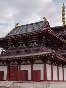 Temple Complex: From south to north, the middle gate, five-story pagoda, main hall, and lecture hall are aligned in a straight line, surrounded by corridor-style buildings. This layout is called the "Shitennoji-style temple complex," one of the oldest temple configurations in Japan.