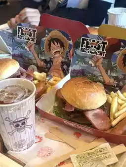 Randomly tried the Straw Hat Crew restaurant in Jurassic Park area, chose the One Piece-themed burger set for 2600 JPY, no need to wait in line.