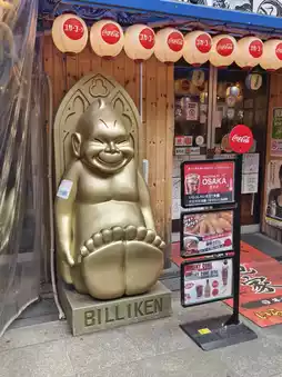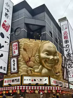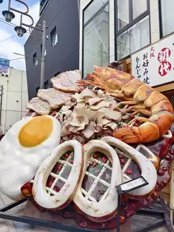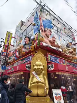 Near Tsutenkaku is Shinsekai Hondori Shopping Street, a great spot for taking photos 📷 of Tsutenkaku! The shopping street has a strong Showa-era atmosphere, with many restaurants 🍴 and specialty shops where you can try Osaka’s famous dish—fried skewers. Like Dotonbori, it has many beautifully designed and large signboards.