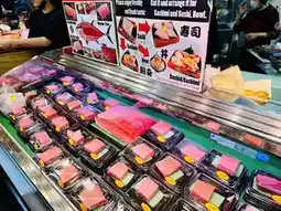 At one seafood stall, we were drawn to a whole slab of pink tuna. The vendor divided the tuna into different cuts, serving sashimi or sushi made to order. The vibrant color and evenly marbled fat of the tuna made our mouths water. We also saw fresh sea urchin, scallops, and various grilled seafood, each bursting with the ocean’s fresh flavor.