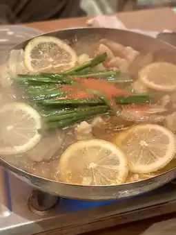 The classic taste where the savory aroma of charcoal-grilled motsu perfectly blends with the rich flying fish broth. The mentaiko and lemon combination is refreshing and likely very popular with women.