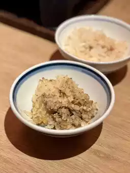 The sea bream kamameshi features fluffy rice infused with the rich flavor of sea bream and a fragrant aroma. The chicken soboro highlights the savory aroma of charcoal grilling, making it perfect for finishing your meal.