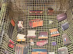 First, enter the main hall of the exhibition, where eight five-story-tall washi paper Monogram suitcase pillars stand like lanterns, welcoming visitors into a dream. The "Trunk Sphere," symbolizing the entrance, is composed of 138 hard trunks, leading to the core of the brand's imagination — the intersection of craftsmanship and creativity. The "Asnières Workshop" section tells the story of the brand's origin, revisiting images and manuscripts from its founding in 1854, guiding visitors to see the foundation of the artisan spirit. The "Expeditions" section, inspired by hot air balloons, presents the brand's spirit of exploration in travel culture. The "Louis Vuitton and Japan" room is a profound tribute to Japanese aesthetics: from tea ceremony and ukiyo-e to modern "Kawaii" culture, Louis Vuitton has never stopped reinterpreting Japanese beauty. The exhibits float above tatami display platforms, with lantern-shaped lights gently suspended, as if time stands still here.