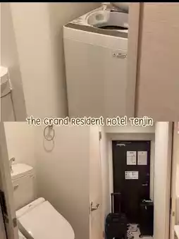 🏨 The Grand Residence Hotel Tenjin (Fukuoka) – 7-minute walk from 🚇 Nakasu-Kawabata Station and near Canal City. Condo-style rooms with kitchens and washing machines. Perfect for long stays. Automatic check-in, but fully equipped. 🏠🧳