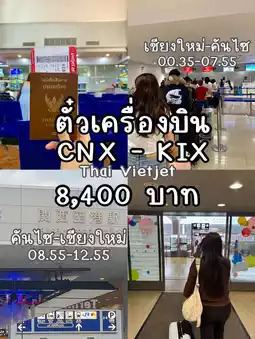 Departure flight: CNX - KIX 12:35 AM - 7:55 AM