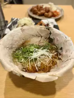The skin is crispy and fragrant, and the filling is juicy with a hint of garlic. A perfect match with ramen.