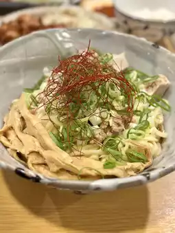 Special noodles with the refreshing flavor of ginger and a rich sauce. The texture of the chunky pork slices is enjoyable, and adding rice doubles the satisfaction.