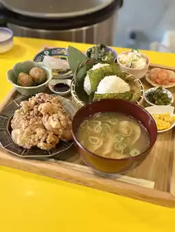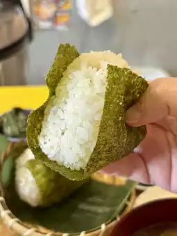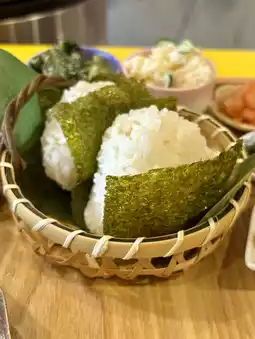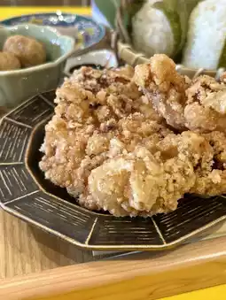 You can have unlimited refills of onigiri! The fried chicken is fresh and juicy, and for an additional ¥300, you'll be craving endless refills.