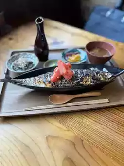 - Charcoal-Grilled Fish Bowl Set: Atomic-Grilled Fatty Mackerel with Mentaiko (¥1,600)