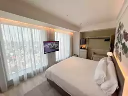 We had a delightful stay in Osaka at this hotel! We booked a club room, allowing for a swift check-in and check-out process in the club lounge. The staff everywhere was friendly and accommodating. Our room was spacious, clean, and attractive, boasting an incredible view from the 27th floor. The bed was comfortable and firm. Amenities were plentiful and satisfactory. However, the room was a tad noisy from the corridor and outside, with traffic and trains audible, so earplugs were necessary. The club lounge provided a tranquil atmosphere. We enjoyed breakfast, afternoon tea, and cocktail hours there several times. Drinks were enjoyable; food was decent, but it seemed to sit out for a while due to fewer patrons. Overall, we thoroughly enjoyed our stay and can highly recommend this hotel, including the club room and lounge.