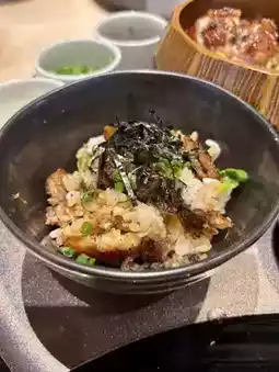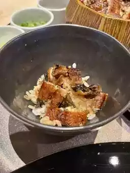 Rice topped with a generous amount of shredded grilled eel allows you to enjoy different flavors with the condiments and broth. Enjoy it as is, with condiments, or as dashi chazuke (tea broth), this dish is highly satisfying. The broth's aroma is also exquisite.