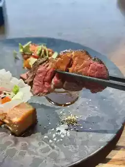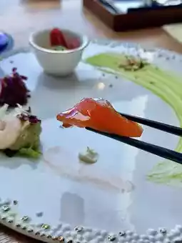 The Awaji beef was juicy and flavorful, while the salmon was perfectly matched with the sauce and salmon roe. 🙆♀️