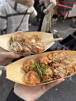 Takoyaki is crispy on the outside and creamy on the inside, with a Kansai-style flavor and a delicious dashi broth. Okonomiyaki is fluffy and filled with plenty of ingredients, making it incredibly satisfying.