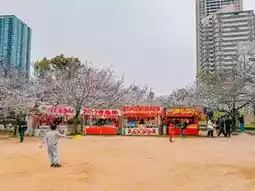 The food stalls in the park operate only during the cherry blossom season. The prices are reasonable, so it's worth trying at least once.