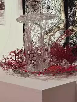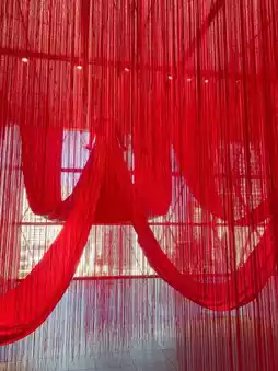 A stunning spatial experience: Six large installations intertwined with red threads create a immersive experience that allows you to experience the senses of absence and connection.