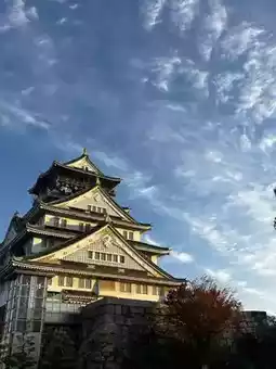 • Golden decorations illuminated by sunlight: The Osaka Castle keep (Tenshukaku) is adorned with golden decorations on its roof and throughout, sparkling in the morning sunlight and appearing even more magnificent.