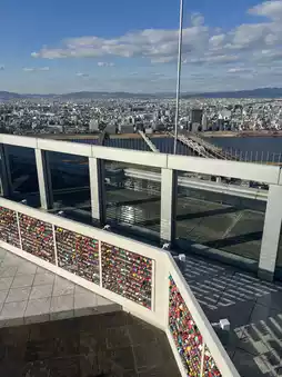 Once you reach the rooftop observatory, you’re treated to a breathtaking view of Osaka city, giving you a liberating sense of openness. Visiting around sunset is especially magical, as you can enjoy both the night view and the twilight glow. 🌇 One amusing feature is the area where couples can attach locks, reminiscent of Seoul’s Namsan Tower. It was unexpected but charming to see couples lovingly securing their locks, which brought a smile to my face. 😆