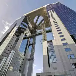 The Umeda Sky Building, 173 meters high, consists of two skyscrapers connected by a sky bridge. Its top floor features the Floating Garden Observatory. Take a high-speed elevator to the observatory for breathtaking 360-degree views of the city: