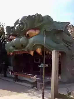 This lion's head-shaped structure, approximately 12 meters tall and 11 meters wide, is the symbol of the shrine. It's said that the lion's enormous mouth swallows up disasters and evil spirits, bringing good luck and victory to those who visit, making it a popular spot for students, test-takers, and athletes.
