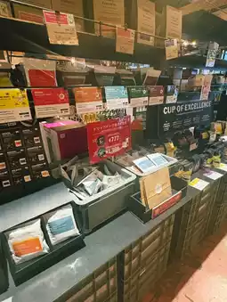 • A large roaster is installed inside the store, filling the air with the fragrant aroma of fresh coffee.
