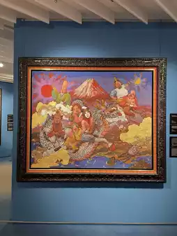 The museum's interior blends a modern exhibition space with Koji Kinutani's vibrantly colored works. The vivid colors are captivating, and standing before the large canvases, you'll be overwhelmed by the energy of the artwork. Many of the works, in particular, reinterpret traditional Japanese elements in a modern way, allowing you to experience a different side of Japanese art.